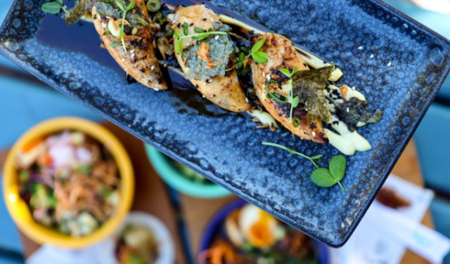 DIY waffles, loaded hotdogs, poke bowls, right on the beach