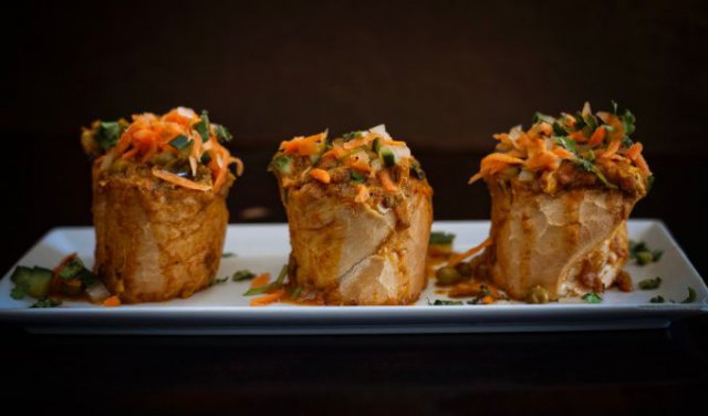 Authentieke Durban ‘bunny chow’ geserveerd met traditionele Zuid Indiase cuisine, een bar en tapas voor een makkelijk diner met vrienden bij Sundoo restaurant in Sea Point